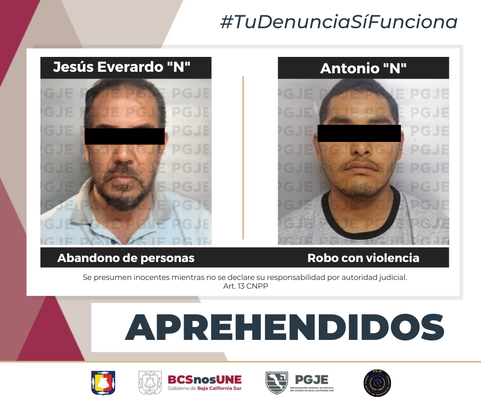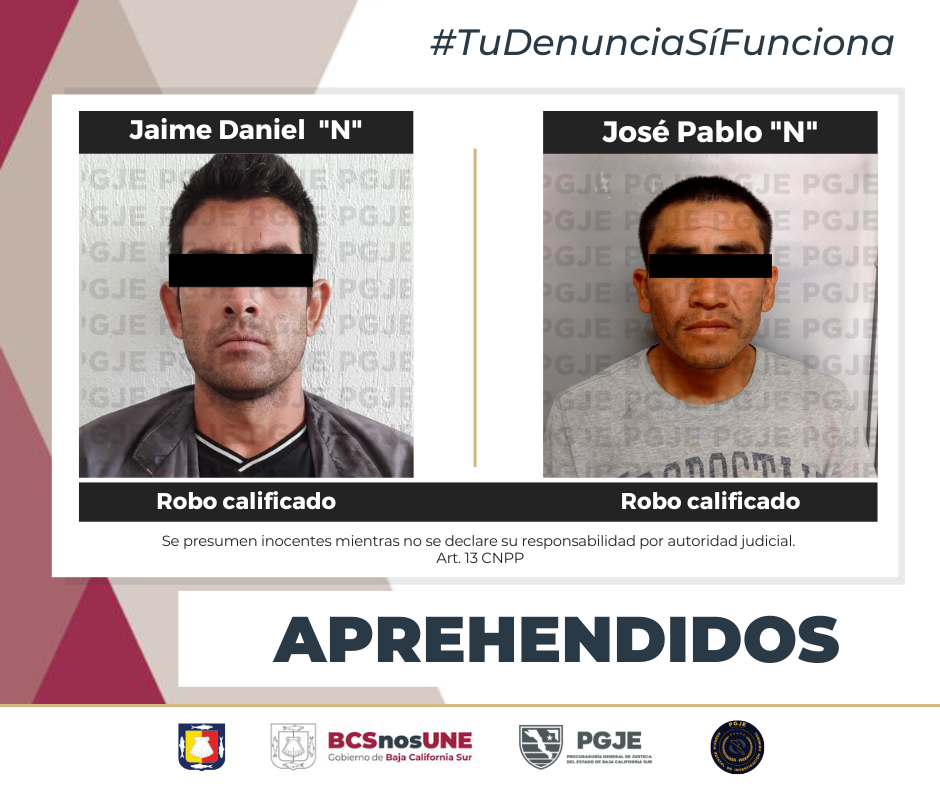 APREHENDE PGJE A DOS PERSONAS EN BCS...