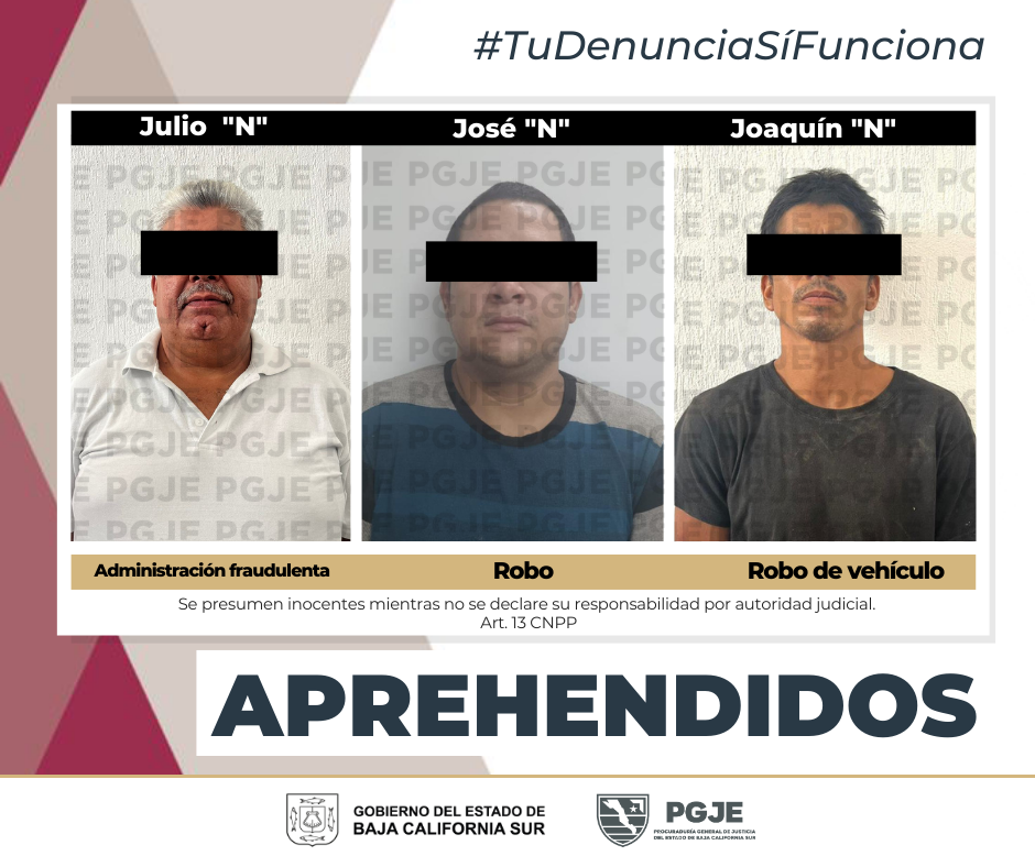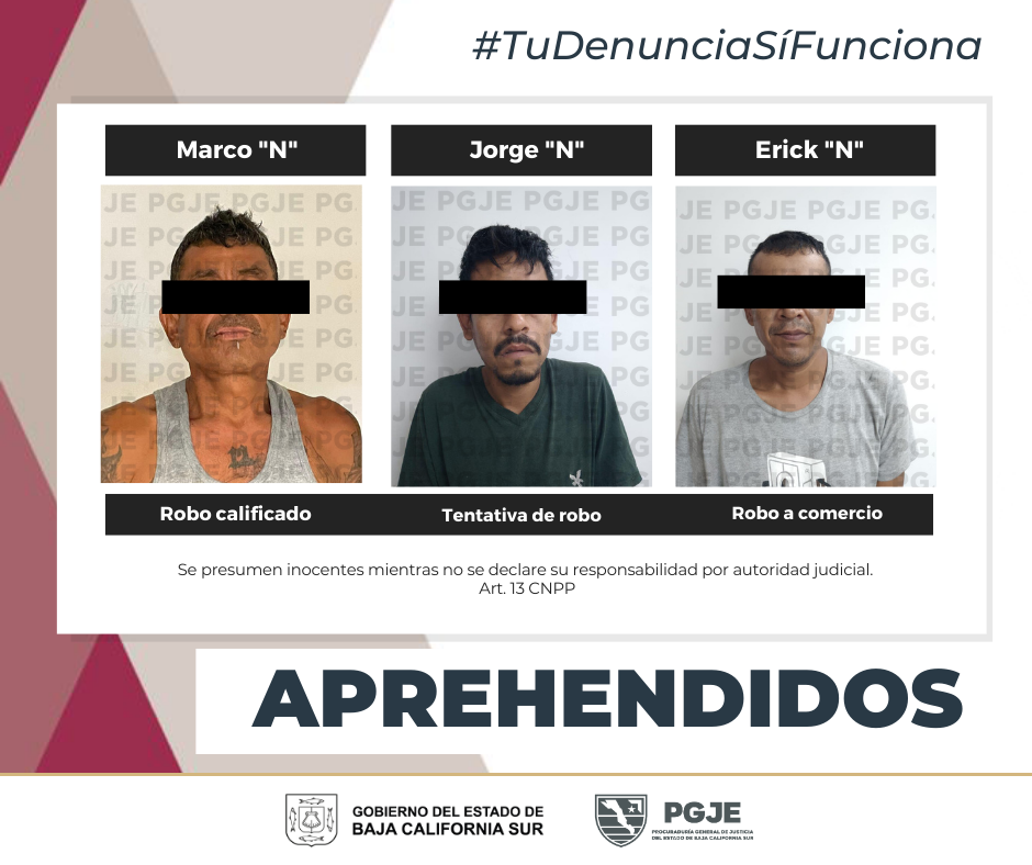 APREHENDE PGJE A TRES PERSONAS EN LA PAZ...