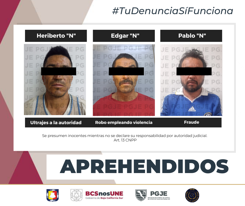 APREHENDE PGJE A 3 PERSONAS POR DIVERSOS...